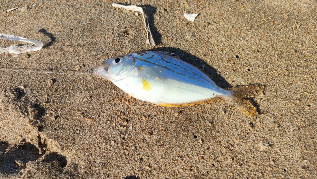 釣れたのはゼンメでした。ゼンメも美味しい魚ですがぬめりが凄く小さいし、それにあくまでキス狙いなのでリリースです。数が釣れるなら持ち帰りもアリなんですけど、そんなには釣れないでしょうしね。